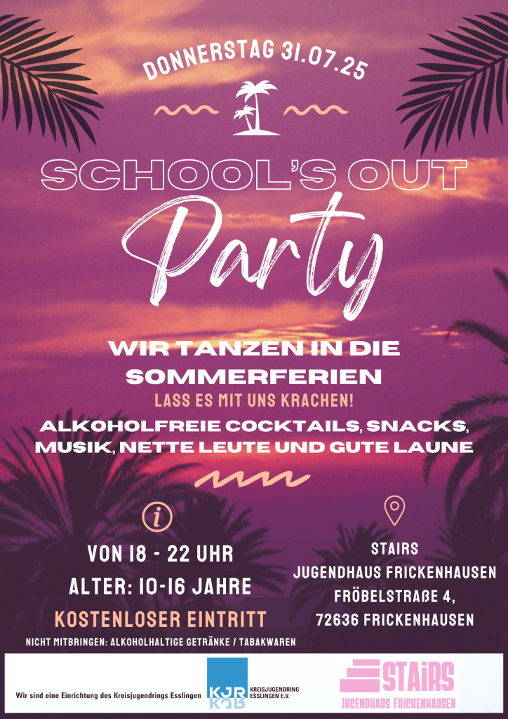 Endlich Sommerferien! Und wir lassen es im Jugendhaus Frickenhausen krachen! Es gibt alkoholfreie Cocktails, verschiedene Snacks, Musik, nette Leute und gute Laune. Kommt vorbei und feiert mit uns den Start in den Sommer!