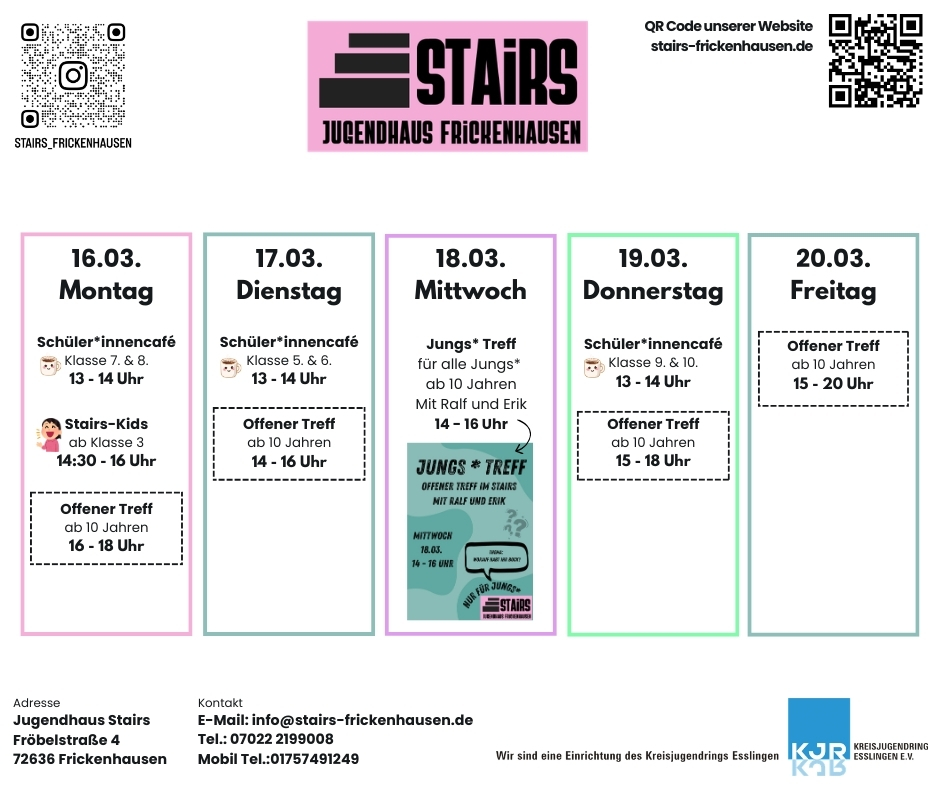 alles wie immer, aber auch nicht: am Mittwoch findet das erste mal der Jungs*treff statt! Kommt vorbei und bringt euch ein!