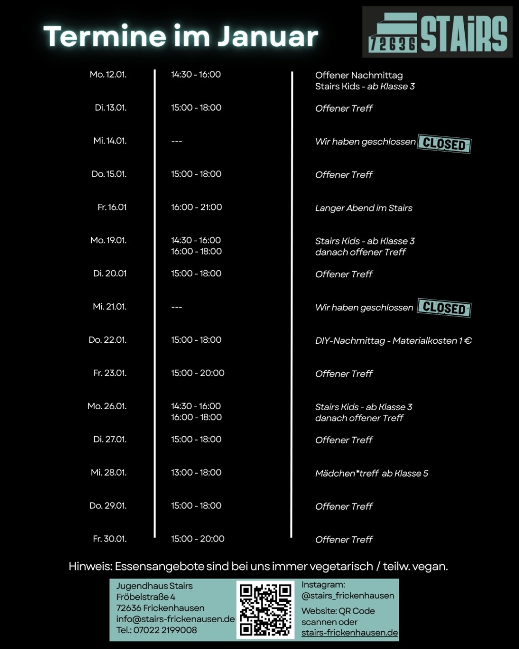 Unser Programm für den Januar ist da! Wir sind zurück aus den Weihnachtsferien und starten voller Energie ins neue Jahr. Dafür findet ihr hier unser…