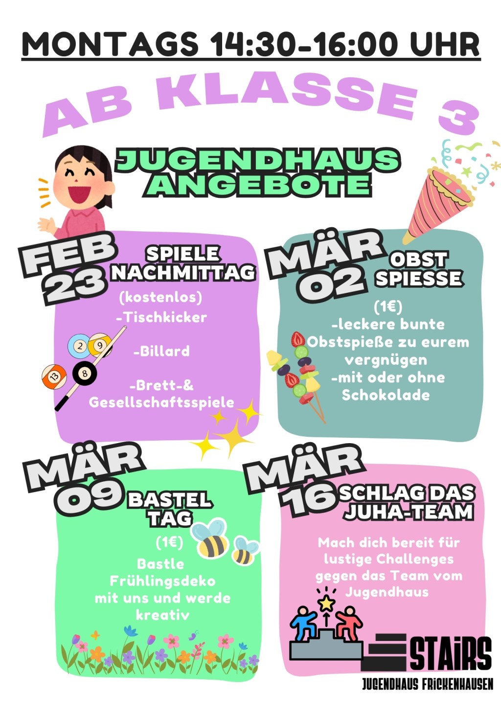 jeden Montag im Stairs – Stairs Kids ab Klasse 3. Kommt vorbei und macht mit! Wer mind. 10 Jahre alt ist darf im Anschluss zum…