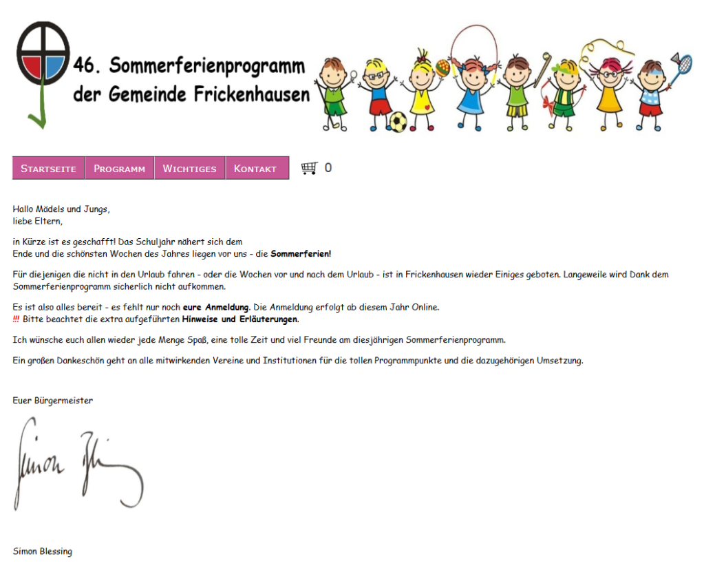 Das große Ferienprogramm von Frickenhausen ist online! Wir haben eine Menge spannender Aktionen für Kinder und Jugendliche geplant. Hier kannst du dich für unsere und…
