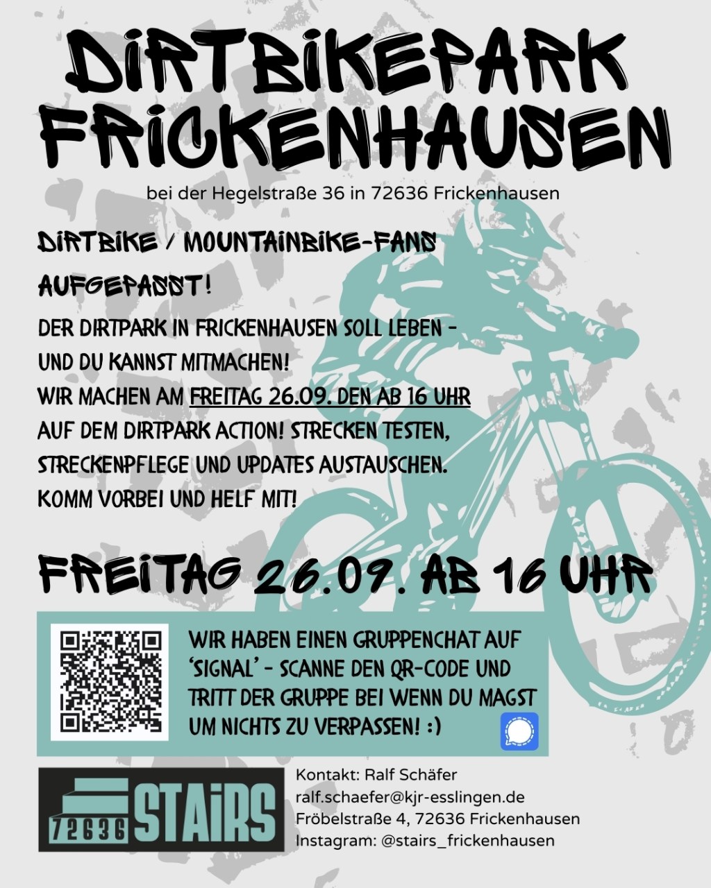 DIRTBIKEPARK FRICKENHAUSEN Dirtbike- und Mountainbike-Fans aufgepasst!Der Dirtpark in Frickenhausen soll wieder richtig durchstarten – und du kannst dabei sein! Am Freitag, 26.09. ab 16 Uhr…